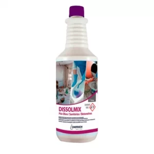 O Dissolmix é um desincrustante ácido versátil e desenvolvido para limpar facilmente resíduos de cimento, rejuntes, incrustações e pisos encardidos com o tempo.Recomendações de uso: * Para a limpeza de louças sanitárias (pias, mictórios e vasos sanitários) - Diluição: Puro.Espalhe DISSOLMIX com o auxílio de um borrifador nas bordas internas do vaso sanitário. Despeje aproximadamente 100 ml no fundo do vaso sanitário. Feche a tampa do vaso e deixe o produto agir por 15 minutos. Esfregue com fibra branca-azul até remover todo resíduo. Acione a descarga. * Para a limpeza de betoneira e caminhão transportador de concreto- Diluição: 1:10. Aplique a solução com um pulverizador na parte interna do equipamento, depois, na parte externa. Espere 5 minutos. Se possível, esfregue com uma vassoura de fibra ou com um esfregão de cerdas duras. Enxágue.* Para limpeza pós-obra e pisos encardidos. Diluição: 1:10. Aplique a solução no piso. Espere 5 minutos. Esfregue com vassoura de fibra. Enxágue.OBS: NÃO USAR DISSOLMIX EM MÁRMORE, GRANITO, GRANILITE E CIMENTADO POLIDO.COMPOSIÇÃO: Água, ácido clorídrico, nonil fenol etoxilado, corante. PRINCÍPIO ATIVO: Ácido Clorídrico.CONSERVE FORA DO ALCANCE DAS CRIANÇAS E DOS ANIMAIS DOMÉSTICOS.