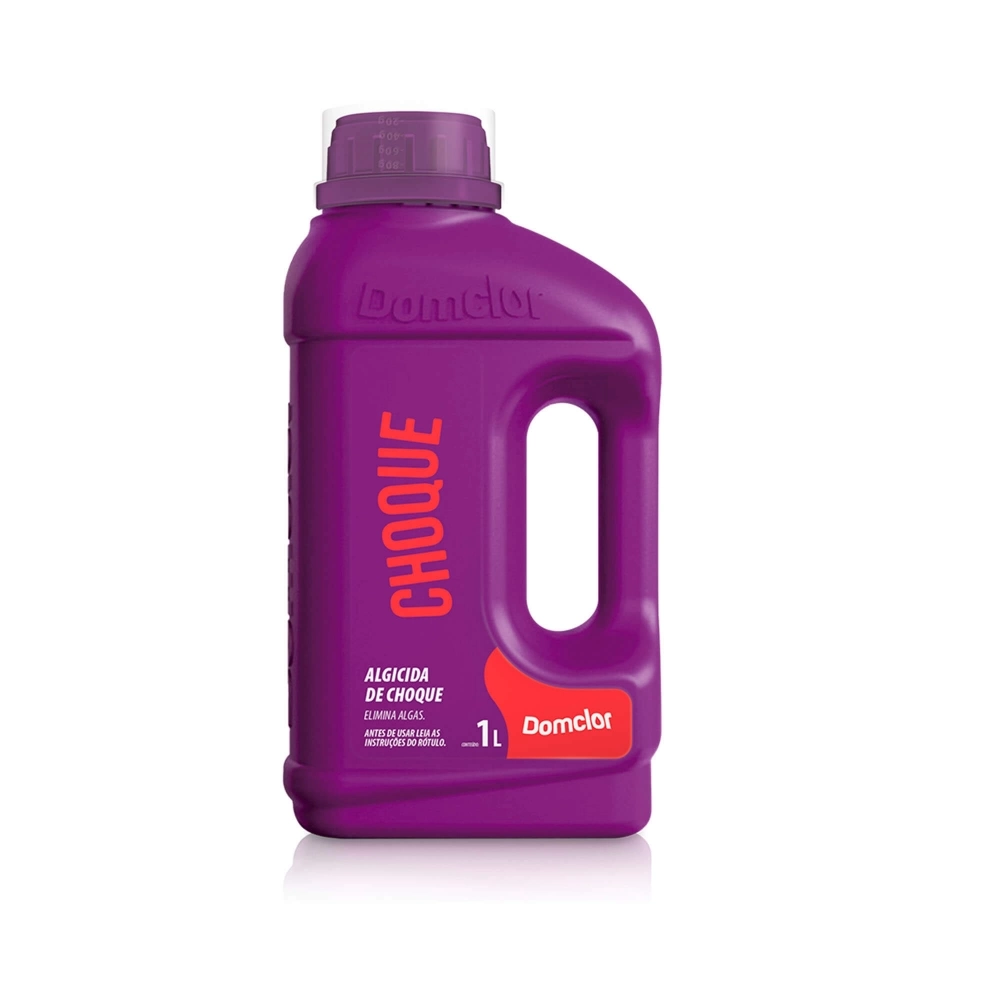 Algicida de Choque DomClor é concentrado indicado para e eliminação de algas nas paredes, escadas e na água da piscina (esverdeada).