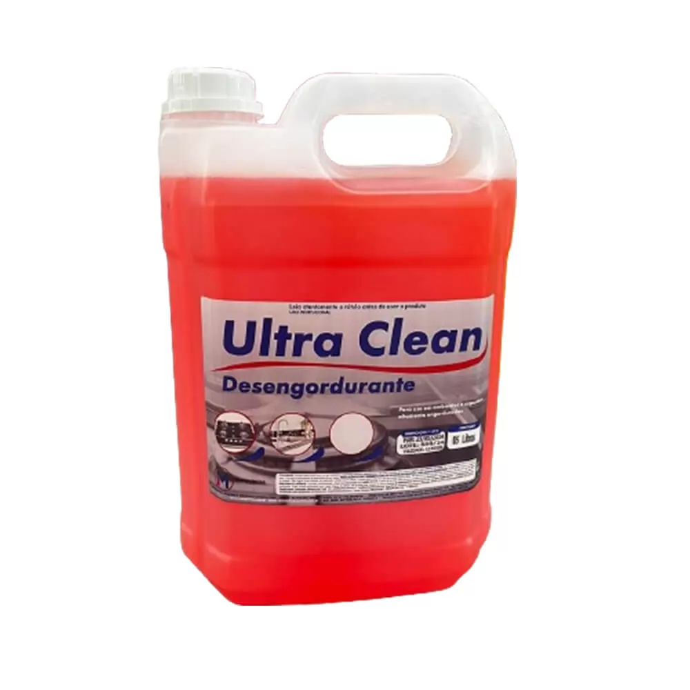 DESENGORDURANTE ULTRA CLEAN Produto indicado para limpeza de superfícies com alto poder de remoção de gorduras em geral. Pode ser utilizado na limpeza de pisos (sem restrições) e superfícies. Embalagem de 5L.