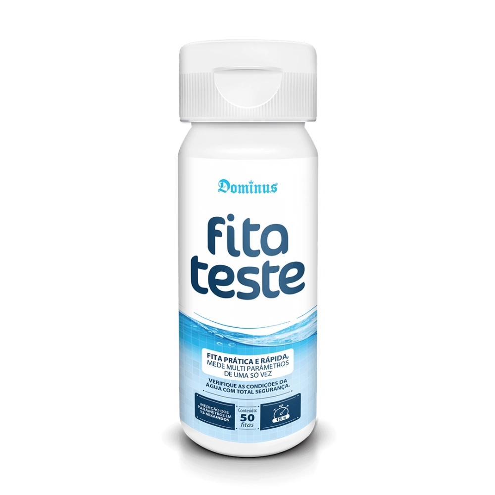 A FITA TESTE DOMINUS, possui compostos químicos que permitem identificar a presença da Dureza total, Cloro livre, Cloro Total, Ácido Cianúrico, Alcalinidade Total e pH da água.